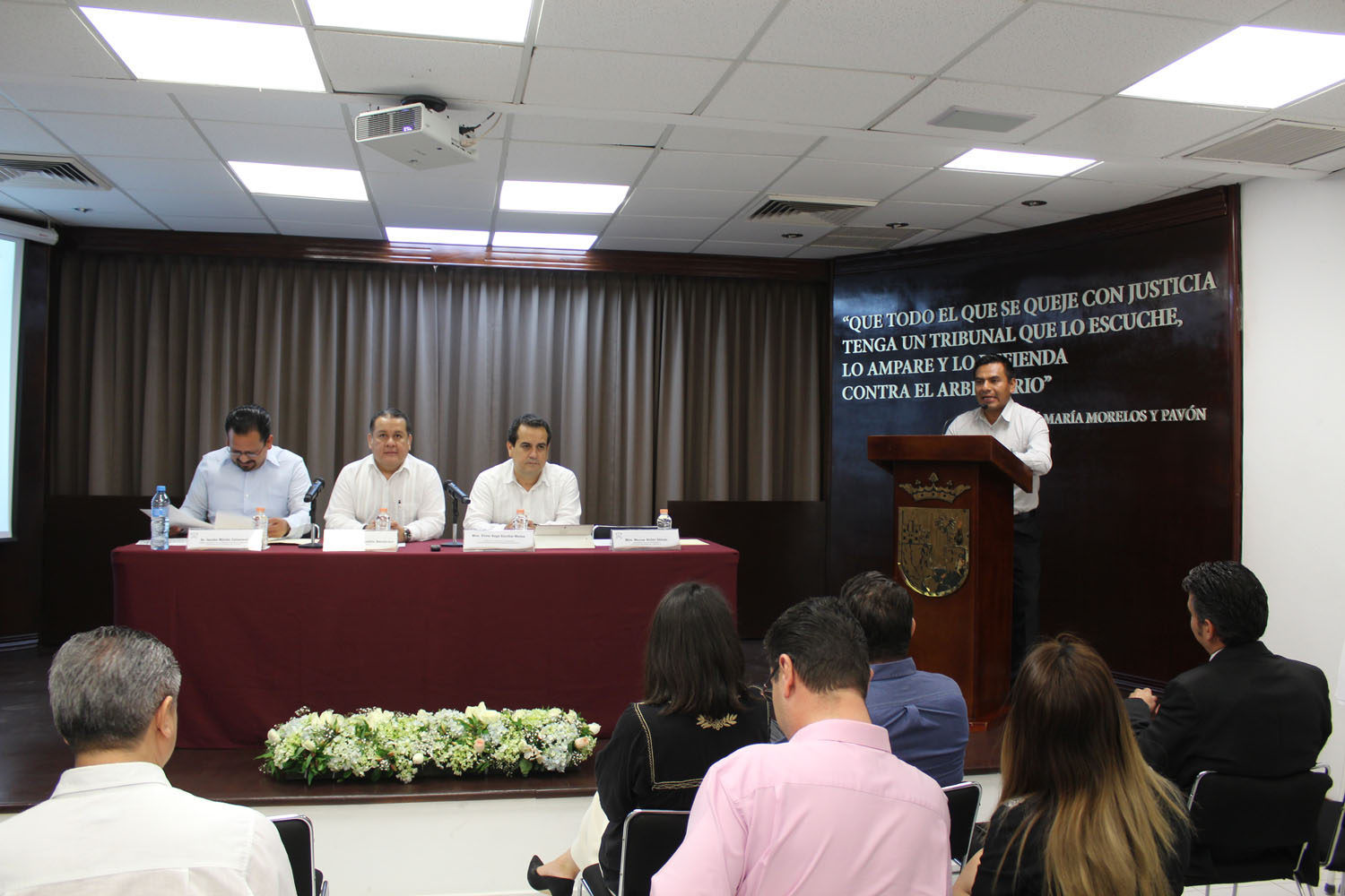 En el evento se contó con la presencia del personal jurisdiccional y administrativo de este órgano colegiado, Magistrada Angélica Karina Ballinas Alfaro, Magistrado Guillermo Asseburg Archila, Doctor Jacobo Mérida Cañaveral, Director de la Facultad de Derecho de la Universidad Autónoma de Chiapas; Maestro Marco Shilón Gómez, catedrático e investigador de la Facultad de Derecho; personal de la Comisión Estatal de los Derechos Humanos, académicos e invitados especiales.
